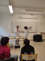 A la pause de 10h, tout le monde a pu assister à un spectacle en extérieur avec certaines expériences… à ne pas reproduire chez soi !